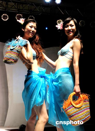 八月十九日,黛安芬、歐迪芬等世界多家知名內衣品牌在北京舉行2005春夏中國內衣流行趨勢發布會,模特通過六個主題從色彩和風格方面詮釋未來內衣形象。中新社記者:王麗南