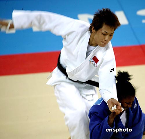 雅典時間19日,中國選手劉霞獲得本屆奧運會女子78公斤級柔道亞軍,為中國代表團又添一塊銀牌。中新社記者:王瑤
