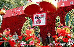 以雞為主題的二00五年《乙酉年》特種郵票一月五日在中國生肖集郵研究會所在地蘇州首發(fā)!兑矣夏辍诽胤N郵票一套一枚,方形票,四邊正中各有一個六角形大齒孔,面值八十分。作者:蔣振江