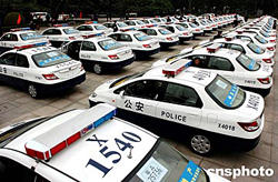 一月五日上午,富力地產集團向廣州見義勇為基金會贈送百輛巡邏警車儀式在中山紀念堂廣場舉行。圖為百輛巡邏警車大展示。作者:陳文