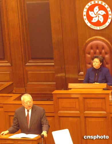 香港特區(qū)行政長官董建華12日下午在香港立法會作《合力發(fā)展經(jīng)濟共建和諧社會》第八份施政報告。作者:趙振清