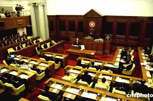 香港特區(qū)行政長官董建華12日下午在香港立法會作《合力發(fā)展經(jīng)濟共建和諧社會》第八份施政報告。