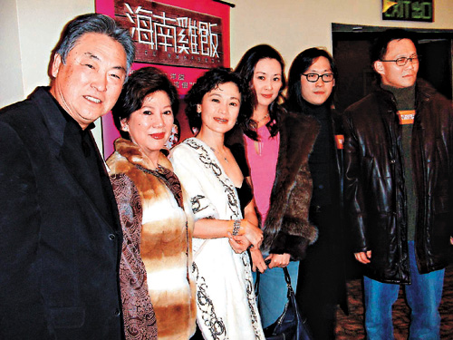 中新網1月13日電 香港大公網消息,張艾嘉電影《海南雞飯》前晚舉行首映禮,出席演員除了男女主角張艾嘉、甄文達,導演畢國智之外,其它捧場嘉賓尚有曾江與焦姣、楊凡、金漢與凌波、王敏德、鄒文懷與女兒、楊受成及王馨平與丈夫等。張艾嘉悉心打扮穿上低胸裙出現,明艷照人。問到她請了哪些朋友來看戲?她謂其實一個都沒有請,只是一班朋友捧場。問到她的丈夫與兒子為何每次都不出席支持?她指兒子因為翌日要返學,老公就因為有事,而且又指自己丑樣,怕拍照。
