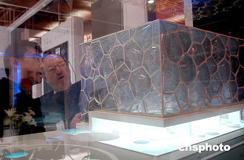 “第三屆北京國際體育基礎設施和場館技術展”一月十八日在北京舉行,由中建國際設計的國家游泳中心“水立方”展示時,引起外國專家注意。目前,“水立方”完成賽時全部施工圖設計,工程已經“浮出”地面。中新社記者:張宇