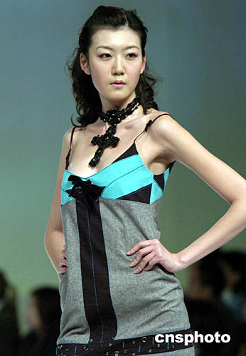 1月19日,香港會展中心舉行的“香港時裝節秋冬系列2005”上,模特演繹“獨家時裝表演”專場設計師秋冬系列服飾。作者:洪少葵