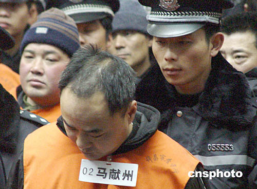 一月二十一日上午九時,許昌市中級人民法院對“中原涉黑第一案”——宋留根、馬獻州、郝洪山特大涉黑團伙案,進行一審宣判。圖為主犯馬獻洲被判處死刑,剝奪政治權利終身。以宋留根為首的涉黑犯罪團伙是五十年來河南最大的犯罪集團。作者:胡珂