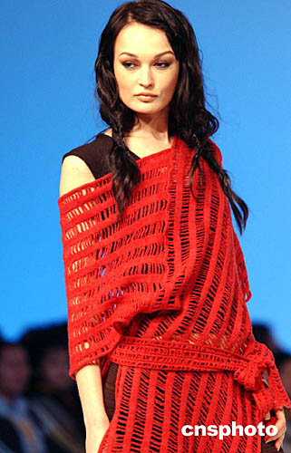1月21日,香港時裝節上演第二場“國際時裝設計師表演”,模特展示澳洲時裝設計師Josephine Nathan的作品。