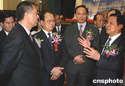 澳門(mén)特首何厚鏵一月二十六日訪(fǎng)問(wèn)廣西,尋求加強(qiáng)合作的新途徑。二00四年,澳門(mén)在廣西投資項(xiàng)目共二百八十七個(gè),合同金額二點(diǎn)九四億美元,實(shí)際投資金額二點(diǎn)六五億美元,在投資廣西的國(guó)家和地區(qū)中,澳門(mén)的合同金額和實(shí)際投資金額均排第八位。圖為廣西自治區(qū)政府主席陸兵(右一)在向何厚鏵先生介紹情況。作者:蔣雪林