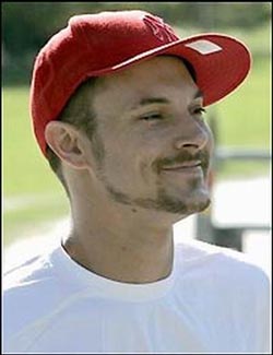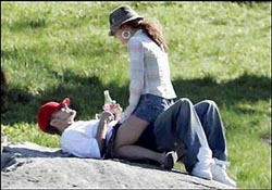 凱文-費德林今年26歲,已經是兩個孩子的父親。去年和布蘭妮-斯皮爾斯結婚后感情一直很穩定,最近更是和小甜甜一起去拉斯維加斯度假。晚一天到達賭城的布蘭妮一來就奔放地跳到老公腿上,把前已晚還享受過別人大腿舞的凱文-費德林嚇了一跳。