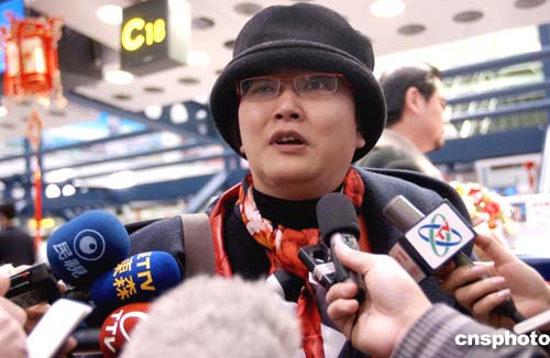 1月29日,鳳凰衛(wèi)視前主播劉海若在北京首都機場搭乘國航CA1087包機時接受媒體采訪。劉海若此次是以臺商家屬的身份搭乘春節(jié)包機航班回臺北。作者:韓藝冰