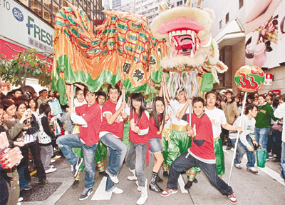 雖然Twins身在臺(tái)灣而缺席,但英皇五星的出現(xiàn)同樣哄動(dòng),加上打鑼打鼓的舞龍儀式,令現(xiàn)場(chǎng)氣氛推至高潮!熱情的歌迷重重包圍,令五星寸步難行。當(dāng)開(kāi)始派發(fā)揮春時(shí),歌迷瘋狂上前搶奪,場(chǎng)面一發(fā)不可收拾,為顧及安全,沒(méi)到兩分鐘,五星就連忙登車(chē)離去。身穿迷你短裙的Isabella,活動(dòng)未開(kāi)始前,還表示不擔(dān)心混亂中被摸,但當(dāng)她被擠在人群當(dāng)中,不禁表現(xiàn)驚慌,一直雙手護(hù)胸。而Yumiko則由Boy'z的Kenny保護(hù),最后五星在保安開(kāi)路下離開(kāi),此時(shí)才可以輕松地向Fans揮手道別。