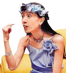 好一陣子沒上通告的許純美雖然最近造型越來越多變,但阿美姊重排場(chǎng)的個(gè)性仍然與過去沒兩樣,在參加某一節(jié)目錄像時(shí),她事先特別叮囑主持人NONO,在邀請(qǐng)她上臺(tái)時(shí)要隆重介紹才行,就像是歡迎奧斯卡影后一般,結(jié)果當(dāng)NONO還在說:“我們今天的特別來賓是個(gè)了不起的人物...”阿美姊自己就如名模走秀般扭上臺(tái),不讓小S與劉真專美于前,還拉起NONO的手現(xiàn)場(chǎng)跳了一段恰恰,舞姿就像是她的招牌拍照pose一樣驚人。