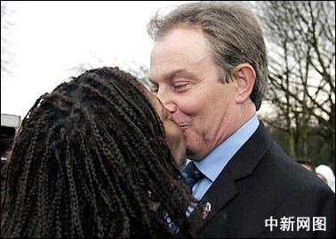 中新網2月1日電 據法新社報道,英國首相布萊爾1月31日在曼徹斯特郊區遭到一名家庭主婦的強吻。這位三個孩子的母親隨后稱,首相有一個“嬰兒唇,一個很溫柔的嘴唇”。