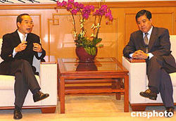 外交部駐港特派員楊文昌2月4日在香港外交部駐港公署會見香港民建聯(lián)立法會議員劉江華﹐就為去年印度洋海嘯災難中受困港人提供協(xié)助及涉港領事保護等問題進行了交談。中新社記者:趙振清