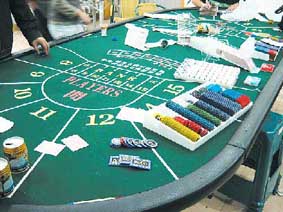 說到賭場的花樣,每個場子都有自己的特色,但是像百家樂、吹球、撥玉米這些基本的項目,是大多數地下賭場常備的。百家樂大家可能聽得比較多,就是8副新牌裝入發牌機中,由發牌人監督機器給莊家和閑家兩邊發牌,先發2張,賭客可任意選擇在莊家或是閑家方下注。兩方下注最多的人可以先看牌,如果莊家和閑家任一方的牌點數超過7點,那么這一把很快就見分曉了,如果兩方都沒有到7點,就繼續發牌,一直到分出勝負。