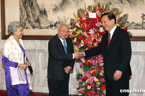 中國國務(wù)委員唐家璇二月七日在北京釣魚臺(tái)國賓館會(huì)見柬埔寨前國王西哈努克。作者:毛建軍