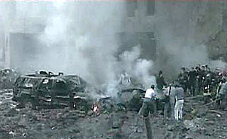 英國《獨立報》的記者費思克告訴美國有線電視新聞網:“現場非常血腥。我看到車內有數具正在燃燒的尸體。爆炸留下的彈坑約有5米深,所以這是一枚大炸彈。至少有22輛小車仍在燃燒,其中一輛車被炸到三層樓那么高的地方。另一輛車看起來被炸到圣喬治賓館墻外面去了。在街對面,水正從破裂的水管中涌出。當消防隊員到達現場時,他們不得不將消防水管拖過遇難者的尸體以撲滅大火。”