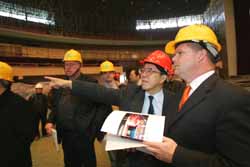圖:國(guó)際乒聯(lián)官員視察48屆世乒賽籌備情況