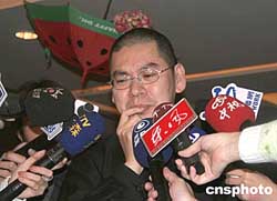 剛剛捧回柏林電影節銀熊獎的中國臺灣導演蔡明亮,二月二十四日在臺北舉行的慶功會上接受媒體采訪。蔡明亮正為獲獎影片《天邊一朵云》能否在臺灣完整上映而苦惱,片中不少大膽的性愛鏡頭引起島內社會各界爭議。作者:曾嘉