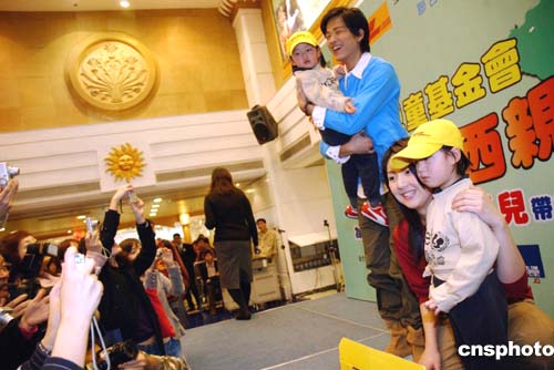 聯合國兒童基金會香港委員會關懷大使楊千嬅以及聯合國兒童基金會香港委員會大使陳曉東,2月24日在香港德福廣場出席聯合國兒童基金會“中國山西親善探訪”記者會。他們將在3月出發前往山西探訪因親人死于艾滋病而淪為孤兒的兒童生活狀況。作者:洪少葵
