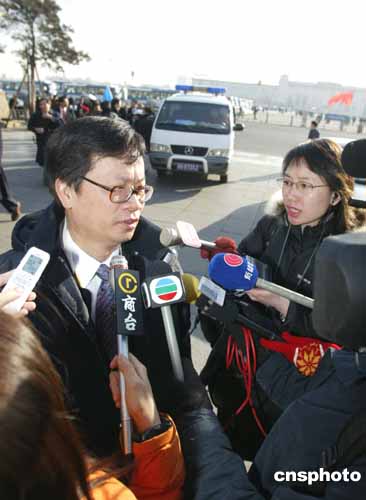 圖:香港代表鄭耀棠就《反分裂國家法》接受采訪