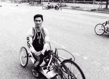 昨日,劉偉無奈地說,這輛競速輪椅是德國客商捐贈給中國最好的殘疾運動員的,價值3萬元,中國就這么一輛。現在滿腦子都是輪椅,根本沒心思訓練了。