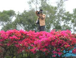 香港海洋公園的杜鵑花盛開﹐吸引著內地游客拍攝。作者:趙振清