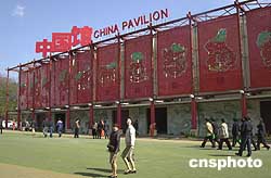 由于中國上海是下屆世博會的主辦地,位于愛知世博會主會場長久手會場東北角一號國際展區的中國館備受矚目。遠遠望去,展館正面外壁上,用紅色材料裝點的中國傳統十二生肖圖案和“中國館”三個大字分外醒目,九條盤旋的青龍雕墻和側壁上的百家姓浮雕也獨樹一幟。