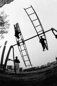體能訓練近乎殘酷。在最初的一個半月的封閉訓練中,她們沒有一天的休整機會,練隊列、拉單杠、撐雙杠、轉旋梯、繞滾輪、跑3000米……每天都是超負荷訓練。按過去的慣例,這段日子,她們每人平均磨壞3雙運動鞋。隨后是跳傘訓練,這種訓練既學習飛行員自救的方式,也錘煉心理承受能力和頑強的戰斗精神。每天,女學員都要在兩米高的跳臺上爬上、爬下數百次。