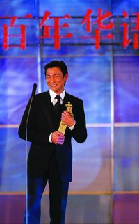 “中國電影百年百大演員”中已故明星張國榮和梅艷芳也位列其中,分別由黃百鳴、劉培基代為受獎。在接受“百大演員”獎座時,被主持人稱作“性格影帝”的葛優也用他具“性格”的感言回報:“感謝華語電影傳媒大獎的評委會,感謝南方都市報,再見!”這句出人意料的“再見”讓人對葛氏冷幽默不禁報以掌聲和笑聲。