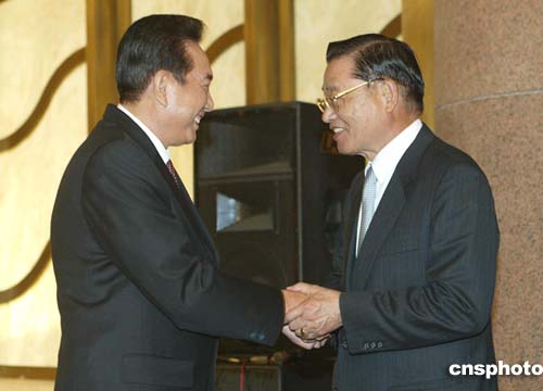 陳云林今晚和中共中央臺(tái)辦、商務(wù)部、農(nóng)業(yè)部、民航總局、質(zhì)檢總局、海關(guān)總署的同仁與中國(guó)國(guó)民黨訪(fǎng)問(wèn)團(tuán)就加強(qiáng)兩岸經(jīng)貿(mào)合作、促進(jìn)兩岸共同發(fā)展所關(guān)系到的兩岸重大經(jīng)貿(mào)合作,進(jìn)行工作性會(huì)談。在會(huì)談開(kāi)始階段的媒體開(kāi)放時(shí)間里,陳云林做以上表述。