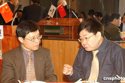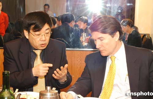 清華同方董事長榮泳霖與美中關系全國委員會會長何立強交流。作者:龔文漠