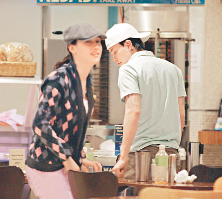 Maggie Q自與吳彥祖分手后,不愁寂寞,身邊男伴車輪轉,先后與楊其龍、日本國寶中田英壽,以及陳冠希等傳過緋聞,感情生活可謂多姿多采。昨日Maggie Q以一身密實casual look于金鐘太古廣場出現,身邊還多了一位雙臂紋身的男伴同行,二人態度十分親昵,邊講邊笑,有如一對熱戀中的情人。Maggie Q與男伴朝Great超級市場的方向而行,當她們乘搭扶手電梯時,二人便情不自禁地互親,后來Maggie Q更拍男方屁股,盡顯她豪邁奔放的性格。