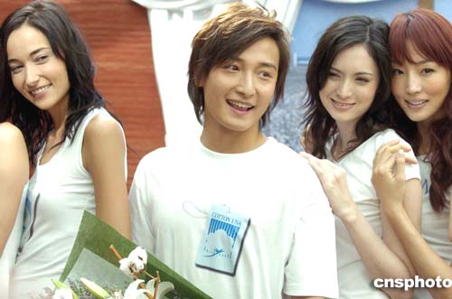 圖:香港紅星方力申與名模展示春夏時裝
