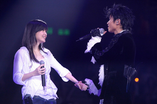中新網4月8日電 據香港《大公報》報道,古巨基演唱會前晚于紅館揭幕,當晚最難得就是“基仔”請來好友周慧敏(vivain)助陣。vivain最初只是座上客,沒想到“基仔”借助觀眾的威力把她拉出場,二人合唱一曲《流言》,贏盡觀眾掌聲。
