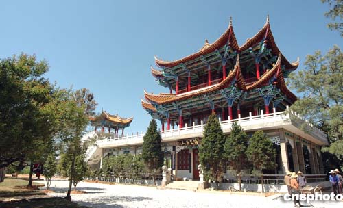 | 在鄭和故里云南省晉寧縣的鄭和公園里建有一座“三寶樓”,其形似一首巨型鄭和寶船,一層船頭翹首向前,二、三層琉璃瓦制頂,雕龍畫鳳,四周漢白玉欄上的浮雕是根據(jù)鄭和下西洋帶回的珍禽異獸及出國時(shí)帶去的瓷器、絲綢等資料精心設(shè)計(jì)的。樓上匾額上書寫著“海上巨人”四個(gè)金字,記者看到施工人員正在緊張施工。據(jù)當(dāng)?shù)毓賳T介紹,為迎接鄭和下西洋六百周年,晉寧縣政府投資二千三百萬元對(duì)鄭和公園進(jìn)行改擴(kuò)建。作者:蔣振江