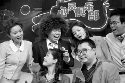 據欄目制片主任戴濤介紹,原先以綜藝節目為主的《新視聽》改版之后將成為中國第一個電視欄目周播的情景音樂劇,劇名為《心靈俱樂部》,而俱樂部成員由飽受失戀之苦、決心自救救人的熱心人明姐(蔡明飾)、潘經理(潘長江飾)、孫大圣(孫浩飾)和管小妹(主持人管彤飾)四個成員組成。除了這四位常駐明星之外,還有諸如尹相杰、于文華等各路明星客串出場。主持人管彤對記者說:“除了在上大學時拍過一部電影之外,我幾乎從來沒有演過戲唱過歌,這次是第一次登臺演戲也是第一次開口唱歌。”