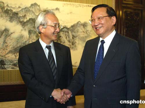 在談到中國政府的對日政策時,唐家璇說,胡錦濤主席和溫家寶總理去年與小泉首相會晤時強調(diào),我們希望中日兩國和平共處,世代友好,互利合作,共同發(fā)展。基于這樣的方針政策,中方希望日本保持繁榮和發(fā)展,理解日本要在國際社會進一步發(fā)揮重要的積極作用的愿望。溫家寶總理不久前在人大記者招待會上提出改善和發(fā)展中日關(guān)系的“三個原則”和“三點建議”,向日方發(fā)出了一個明確信息,即在“以史為鑒、面向未來”的基礎(chǔ)上,與日本加強合作,謀求共同發(fā)展。