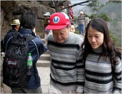 據悉,4月16日是黃山天都峰結束5年封山后,第一天向游客開放。很多游客當天見到楊振寧夫婦身著情侶裝,手牽著手漫步走過排云亭。楊老先生的精神狀態很好,不時的指著遠處的山峰景色給愛妻介紹。 (吳永泉)