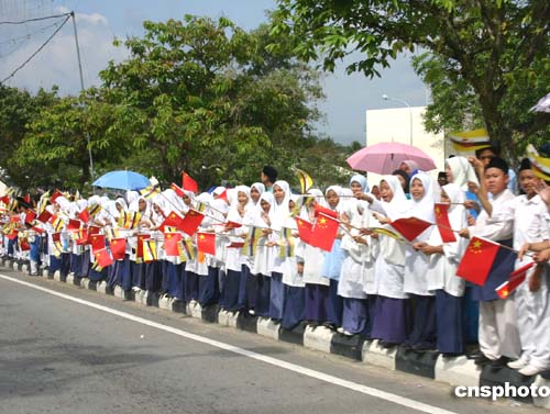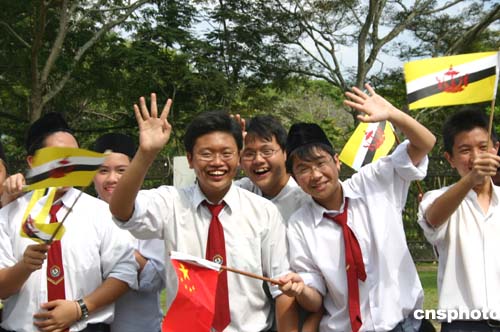 4月20日,文萊中學生王宮外列隊歡迎中國國家主席胡錦濤到訪。作者:李靜