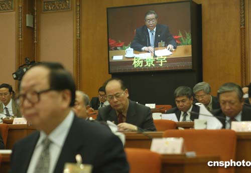 四月二十六日,全國人大法律委員會主任楊景宇在北京人民大會堂作《關于公務員法修改意見的報告》,提請十屆全國人大常委會第十五次會議審議。作者:史利