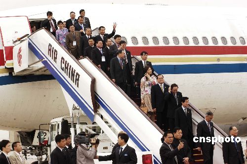 中共中央臺辦主任陳云林、中共北京市委副書記龍新民、在京臺商代表和北京各界代表列隊在停機坪熱烈歡迎連戰一行。