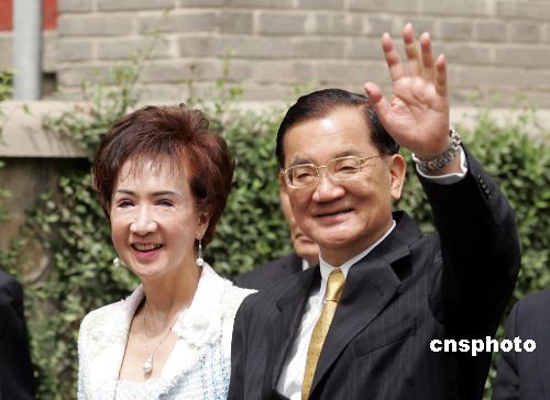 二零零五年四月二十九日,中國國民黨主席連戰(zhàn)在北京大學演講后,攜夫人參觀母親趙蘭坤當年在燕京大學就讀時曾住過的靜園六院中的一院。圖為連戰(zhàn)在院外接受記者采訪時高度稱贊北大學子。作者:武仲林