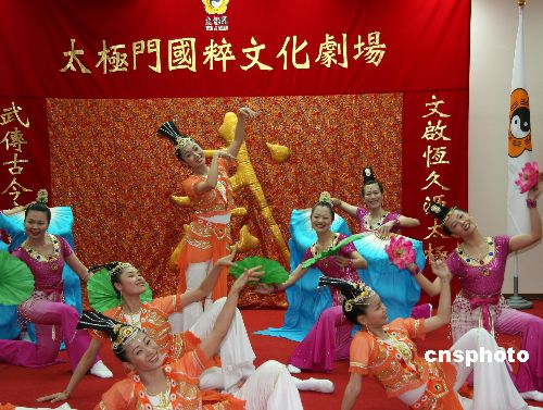 太極門弟子獻上平日難得一見的鯉魚躍龍門舞蹈,歡迎遠方來客。作者:楊伏山