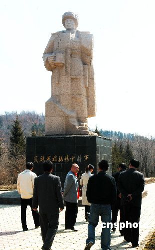 楊靖宇雕像每日都有許多市民前來祭奠英雄。作者:王麗南