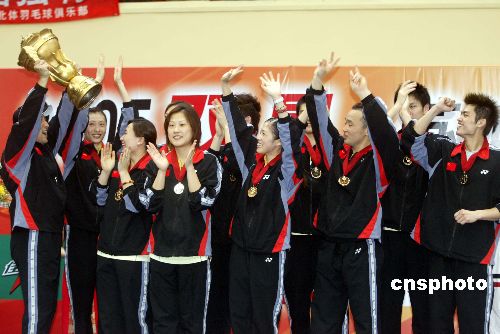 五月十五日晚,第九屆蘇迪曼杯世界羽毛球混合團體錦標賽決賽在北京首都體育館結(jié)束,在中國隊對陣印度尼西亞隊的比賽中,中國隊憑借混雙、男單、女單三戰(zhàn)全勝的戰(zhàn)績,順利奪得蘇迪曼杯。