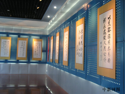 該紀念館的展覽圖片分別從焦裕祿同志的童年直至他為工作獻身蘭考的不同時段詳細介紹了他的光輝事跡。并陳設了焦裕祿同志生前曾用過的部分物品,包括那把他因患肝病后為止疼堅持工作而用胳膊頂壞的藤椅;館中還按比例大小放置了焦裕祿同志生前所用的辦公室模型,向世人真實再現了“好書記”焦裕祿的光輝形象。