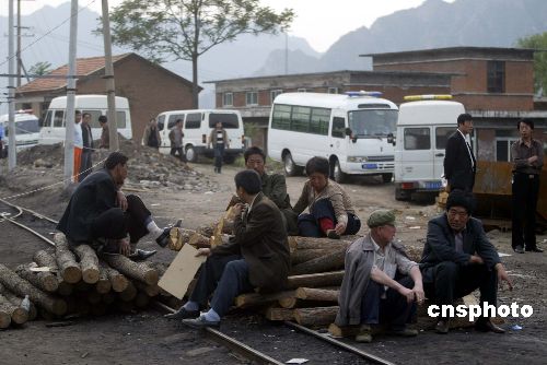 五月二十日,河北承德暖兒河“五·一九”瓦斯爆炸事故搶救工作仍在緊張地進行之中,發生爆炸的是暖兒河煤礦南二采區工作面,距離地面深有二百八十米。井下五十一名被困礦工基本情況已經查清,現在共發現七名遇難礦工尸體。圖為礦工家屬在礦區焦急等待消息。作者:盛佳鵬