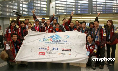 | “2005地球第三極珠峰大行動”五月二十日從北京啟程。三十三名志愿者從首都機場出發(fā)前往西藏拉薩,他們將和西藏登山隊專業(yè)隊員、當(dāng)?shù)馗呱絽f(xié)作一起,克服珠峰地區(qū)高寒、狂風(fēng)、缺氧、低壓等惡劣的自然環(huán)境,對存留在珠穆朗瑪峰海拔5120米大本營至海拔8000米之間的登山廢棄物進行全面清理。作者:陸媛