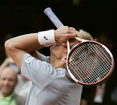 中新網4月25日電 在昨天晚上結束的法網男單下半區首輪比賽中,美國老將阿加西苦戰5盤,以2比3(5比7/6比4/7比6/1比6/0比6)不敵芬蘭的資格賽選手涅米寧,慘遭淘汰出局。江南時報報道,這也是阿加西連續兩年在法網首輪出局。